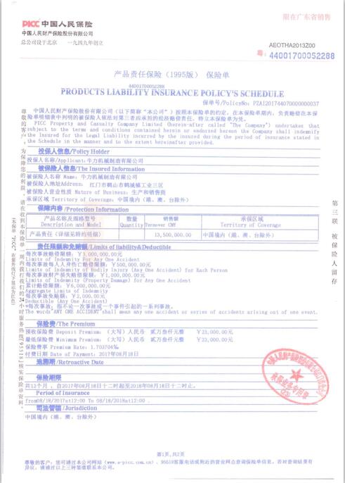 • 產品責任保險單